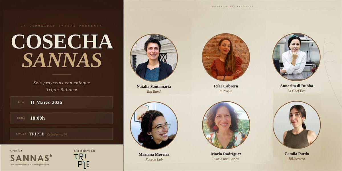 Las Cosechas de SANNAS son un espacio de inspiración e intercambio además del lugar ideal para hacer networking. En la Cosecha del mes de marzo conocemos las iniciativas empresariales de mujeres de nuestro entorno que apuestan por un crecimiento equilibrado en su triple balance (económico, social y ambiental).