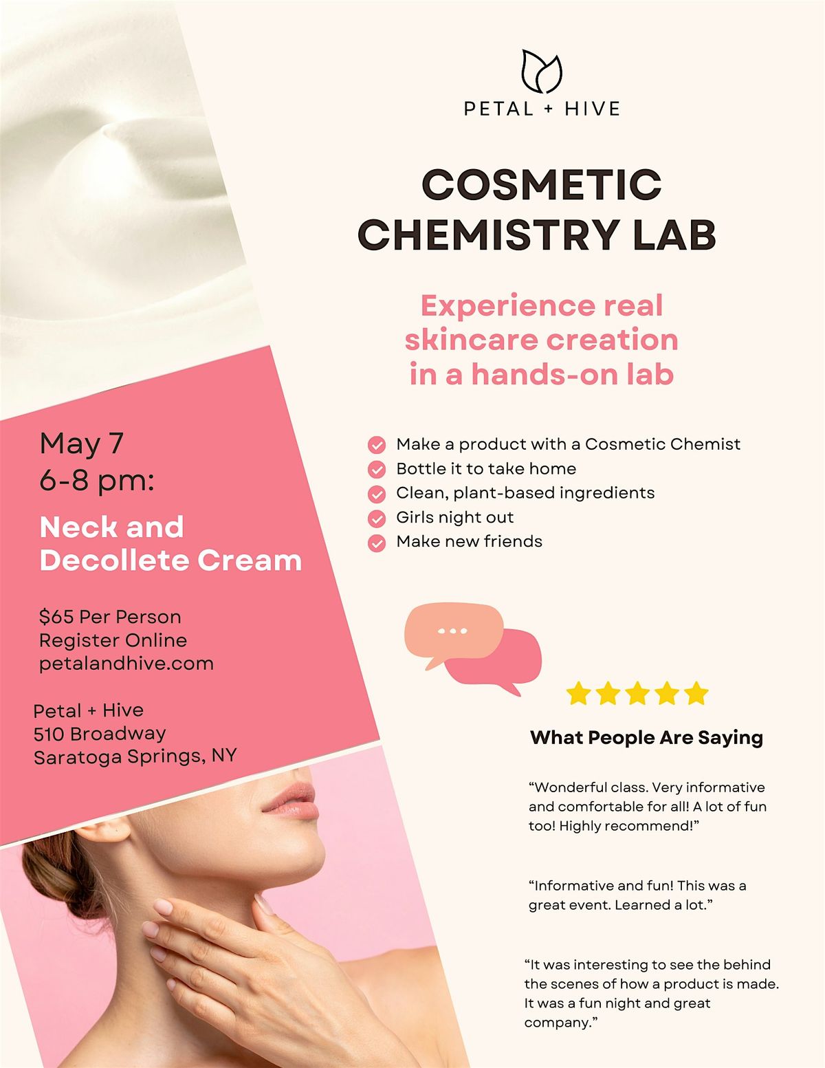 At the end of the workshop, we’ll bottle the product together—and you’ll take home a full-size skincare product to use in your own routine.