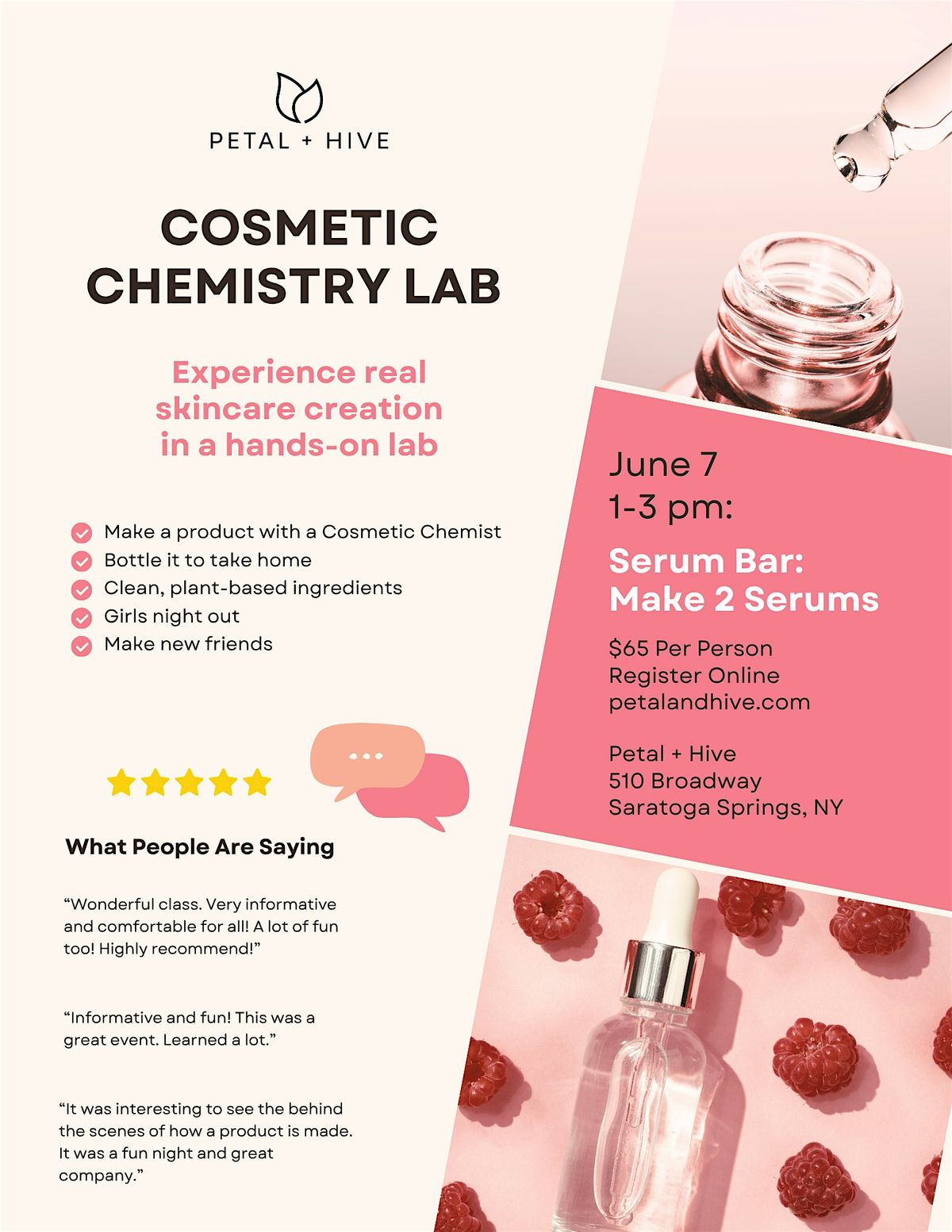 At the end of the workshop, we’ll bottle the product together—and you’ll take home a full-size skincare product to use in your own routine.