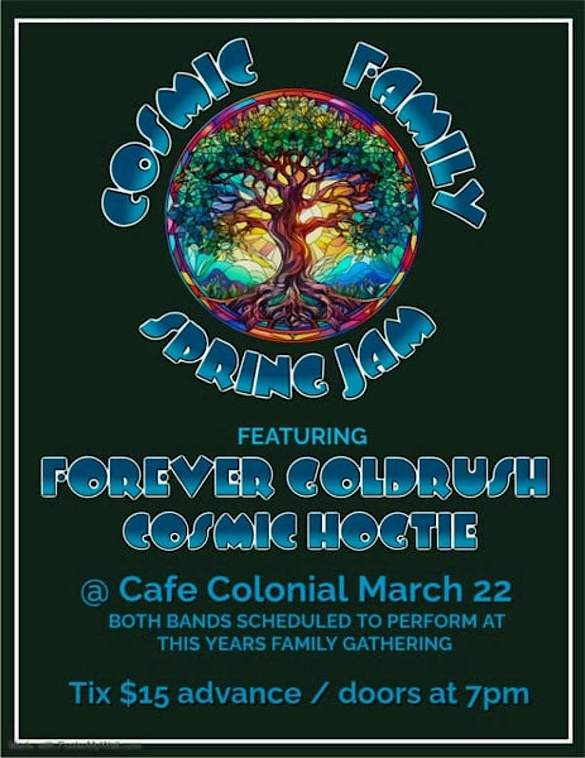 Cosmic Family Spring Jam Brings Together Forever Goldrush & Cosmic Hogtie for a Springtime Roots Celebration.