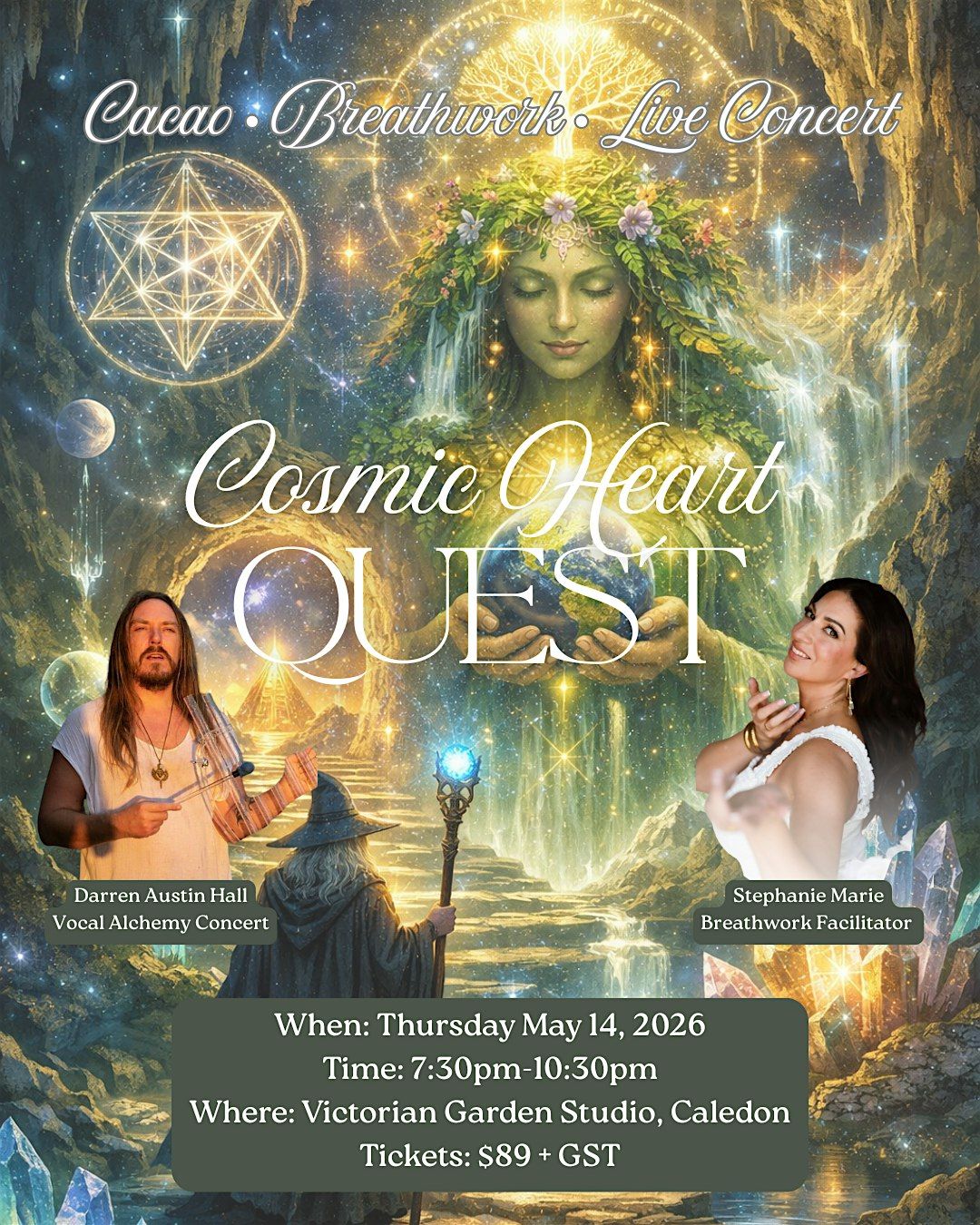 Embark on a journey of self-discovery and connection with the universe at our Cosmic Heart Quest event! Cacao + Breathwork + Live Concert!!About this Event