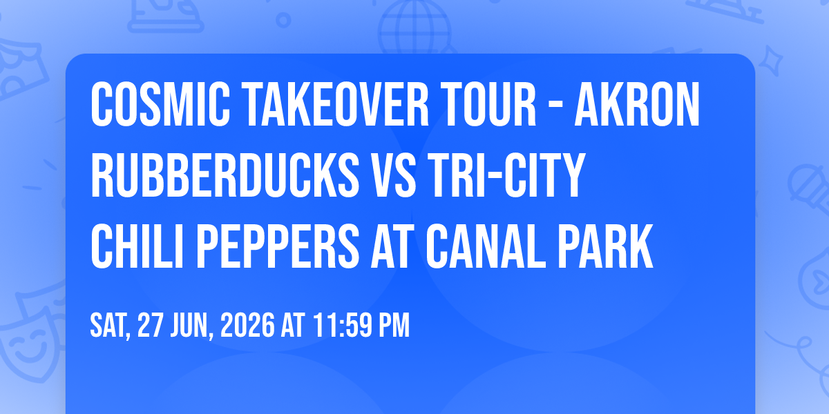 π Welcome to Cosmic Takeover Tour - Akron Rubberducks vs Tri-City Chili Peppers at Canal Park, where dreams come alive and possibilities are endless! ποΈ Join us at Canal Park in the heart of Akron, OH for an event that defies expectations. π On June 27th, 2026 at 11:59 PM, be part of something truly extraordinary as we bring together innovation, entertainment, and pure magic. β¨ Every aspect has been carefully designed to ensure an unforgettable experience for all our guests. Whether you're seeking adventure, inspiration, or simply a break from the ordinary, this event promises to deliver beyond your wildest dreams. π Prepare for a journey into the extraordinary!
