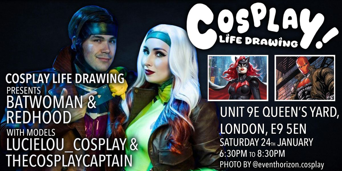 Prepare for a dynamic life-drawing showdown as we welcome the phenomenal cosplay duo LucieLou_Cosplay and TheCosplayCaptain, as the formidable Batwoman and the relentless Red Hood. Expect bold poses straight out of Gothamโs gritty streets.