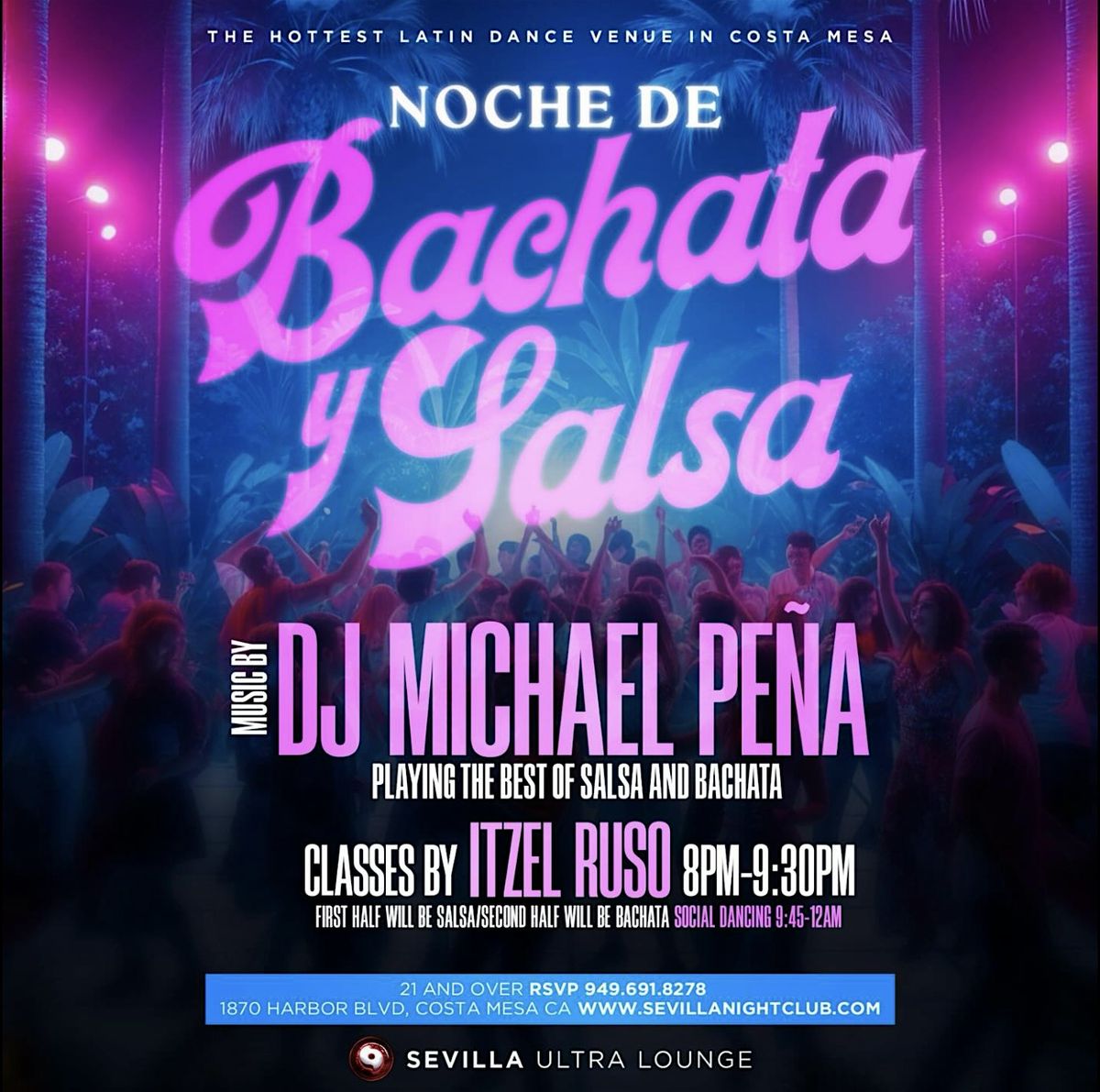 Join us at Sevilla Nightclub, Costa Mesa for an unforgettable night of Bachata dancing, meet peopl, and an exciting after party.