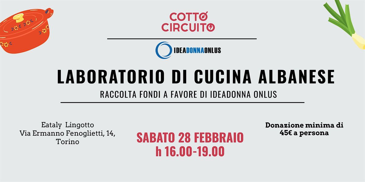 Sabato 28 febbraio andiamo in Albania con Cottocircuito: un paese vicino ma con ricette poco conosciute. Lo esploriamo in tre ore di laboratorio gastronomico, al pomeriggio, da Eataly Lingotto.