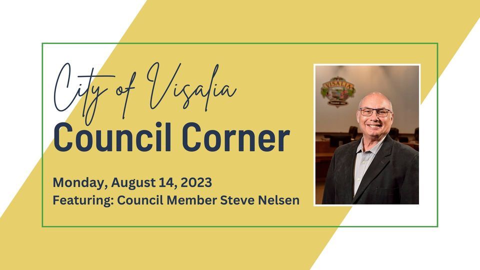 Join a City of Visalia Councilmember for Council Corner on Monday, August 14, 2023, starting at 5:30 p.m.Open to Visalians of all ages, Council Corner is a new, monthly opportunity to meet directly with a City of Visalia council member, in-person, one on one. Attendees are invited to bring questions on City business, discuss items of concern or share happy community news.