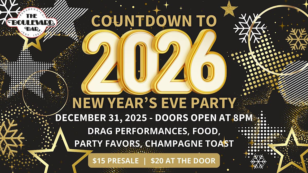Get ready to ring in the new year with us at The Boulevard Bar! Bring your friends, enjoy the vibes, and let's welcome 2026 together with great drinks and a fantastic atmosphere. Doors open at 8pm for a night filled with great music, dazzling drag performances, delicious food, party favors, and a complimentary champagne toast at midnight!