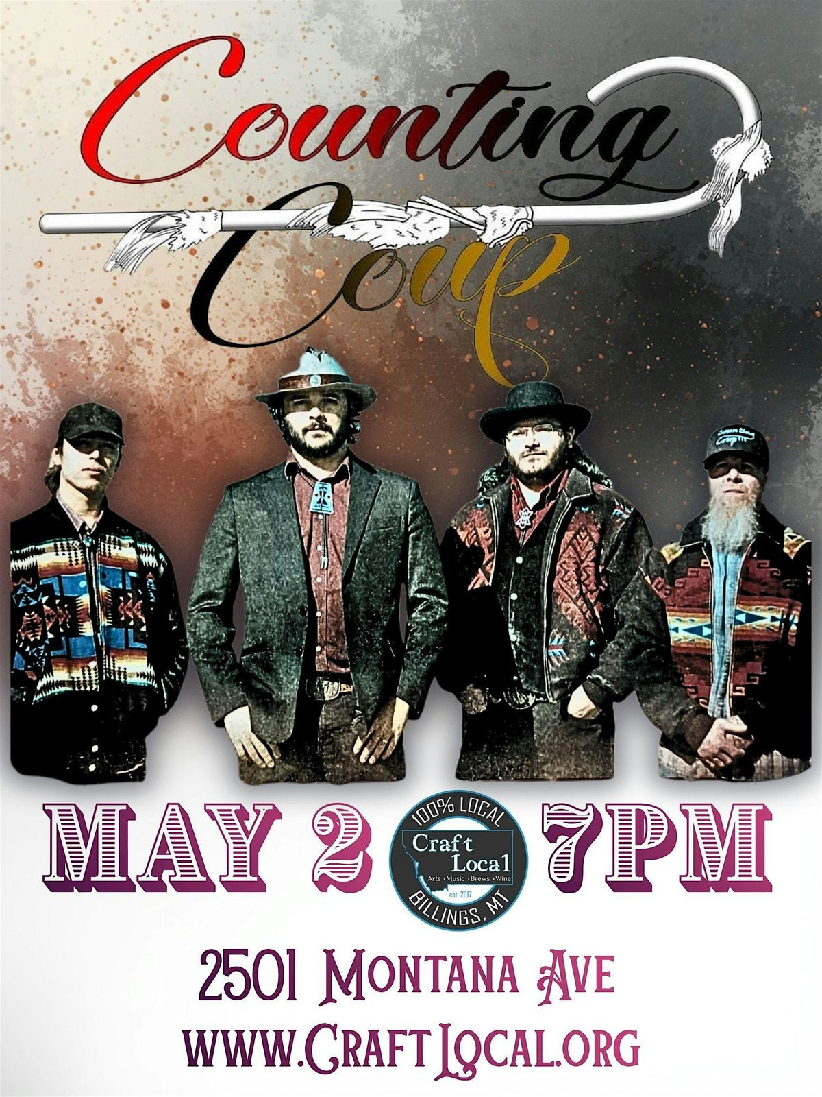 Counting Coup, in its purest form, is an act of bravery reliant upon steel nerves, glorious ambition, and unfaltering faith. This band brings all these things and more to each performance. Counting Coup, with its rugged, rowdy, and broken sound, is bound to draw you in with soulful leads and melodies while flattening you with lyrics that range from gleeful to heart wrenchingly desolate. It is a collaboration of joy, pain, suffering, understanding, and plain old fun. The band is comprised of Troy Falcon on bass/lead vocals, Toby Falcon on guitar/vocals, Brenden Fritzler on harmonica, and Ken Clark on drums.