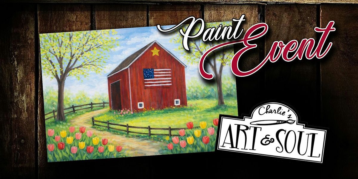 Join us for a laid-back, creative night inspired by a charming red barn surrounded by fresh spring colors. This acrylic painting features soft, simple brushstrokes, abstract budding trees, and a loose field of tulips perfect for all skill levels.