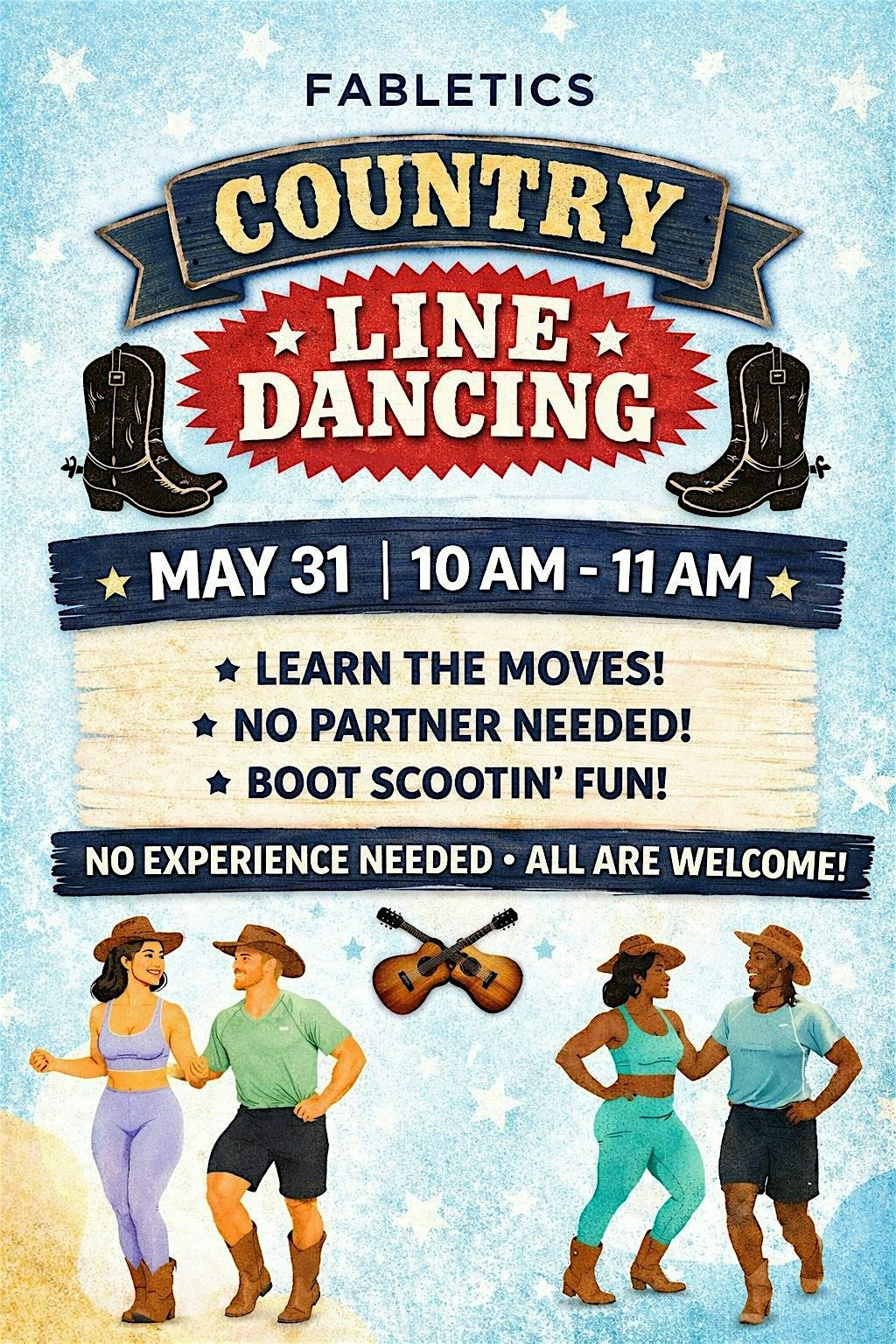Come join us for a fun afternoon of line dancing at Fabletics! Get ready to kick up your heels and learn some new moves on March 15th at 11:00 AM. No experience necessary - just bring your energy and enthusiasm. Let's dance our way into the new year together!