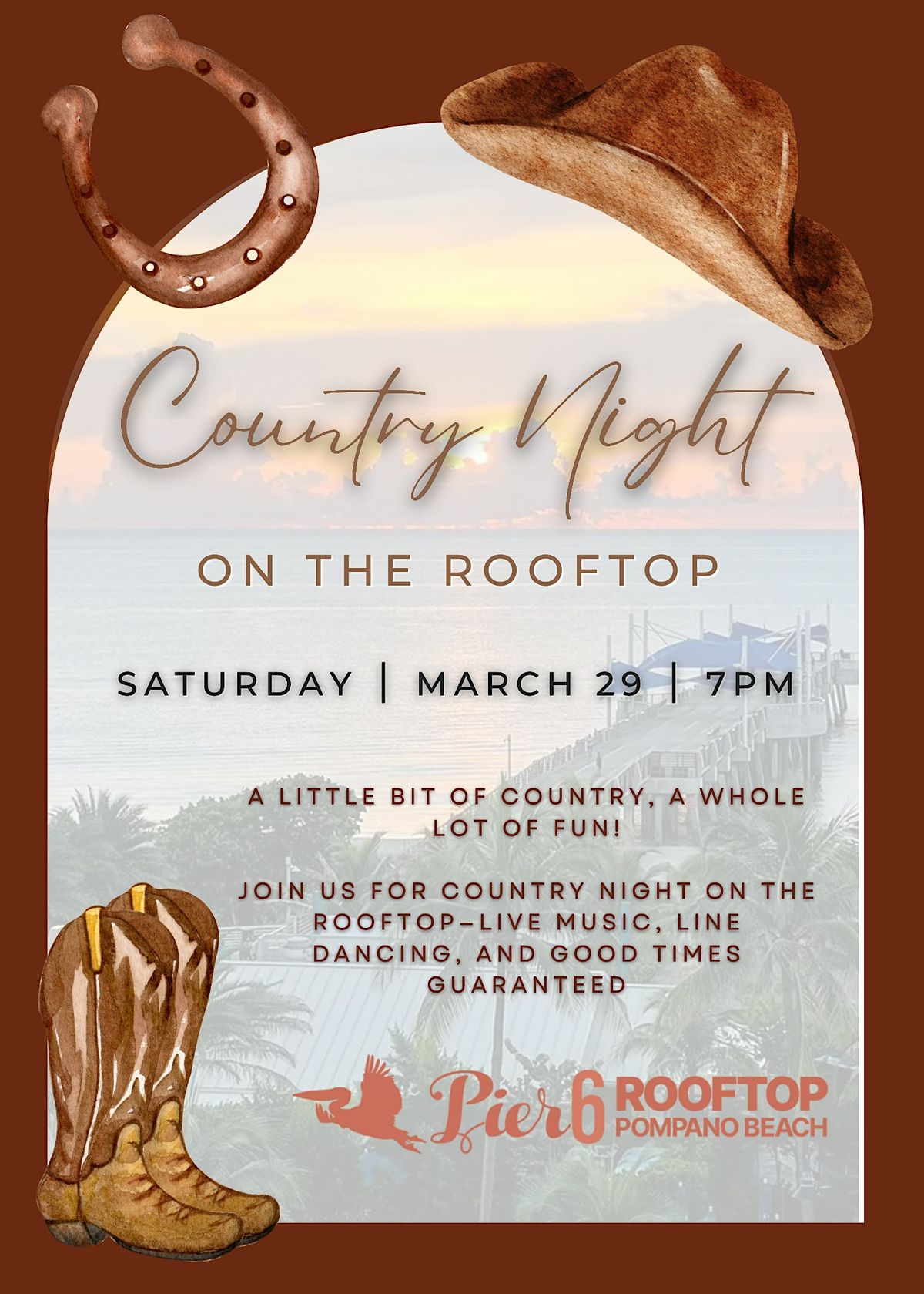 Get ready for country hits, ice-cold drinks, and line dancing with a view. Meet us on the rooftop!About this Event