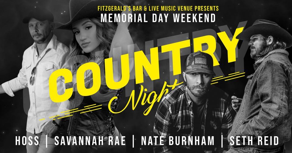 Country Night w/ HOSS, Nate Burnham, Savannah Rae & Seth Reid$7 Presale/ $10 Day of Show (21 and up)