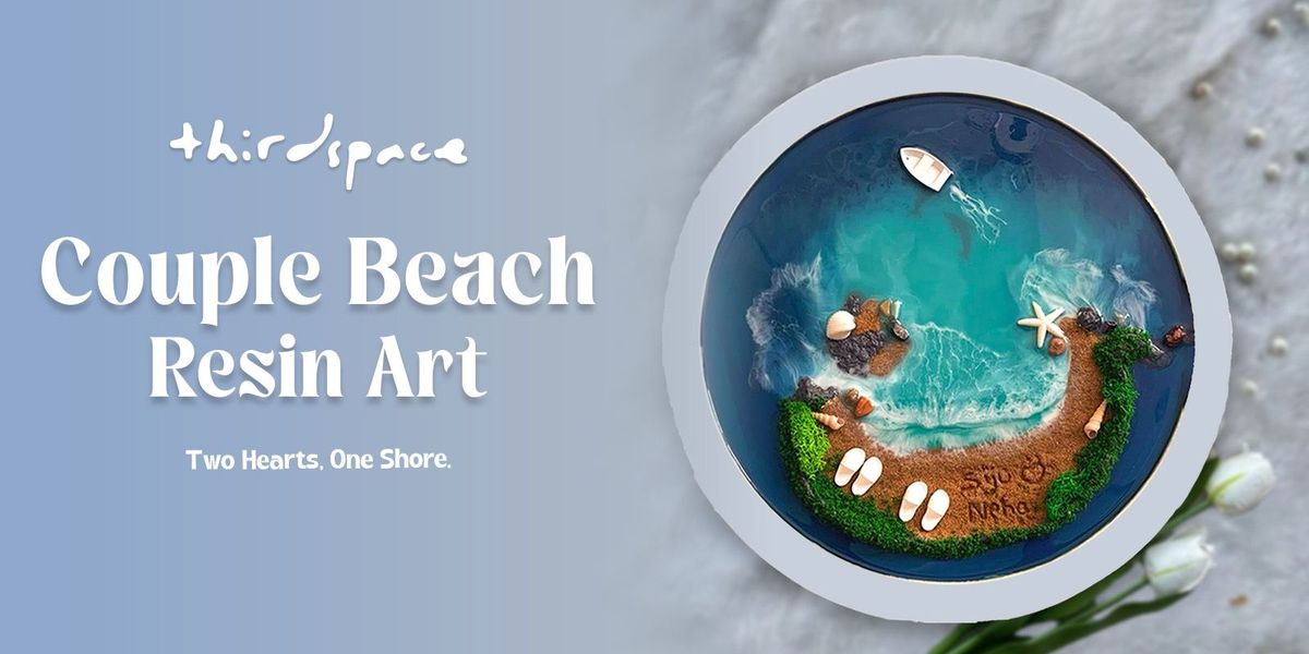 A couple beach resin artwork activity where you create a coastal-inspired resin piece as a pair.