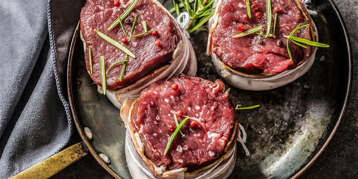 Make a date to invest a little time in learning to make everyone's favorite steakhouse menu with the added bonus of working with a variety of bacons. From the appetizer to dessert, you'll enjoy bacon in every bite.