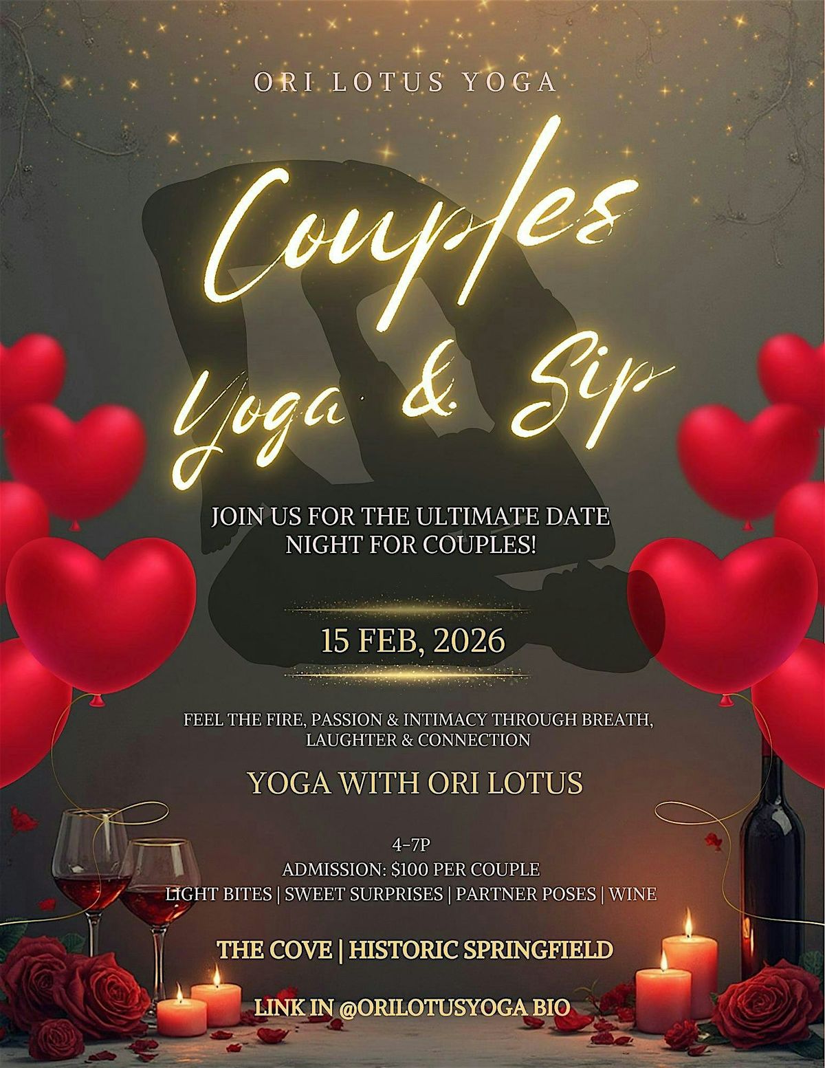 Couples Yoga & Sip: An Intimate Valentine’s Experience 🍷👩🏾❤️👨🏽👩❤️👨👩❤️💋👩🧘🏽♀️❤️