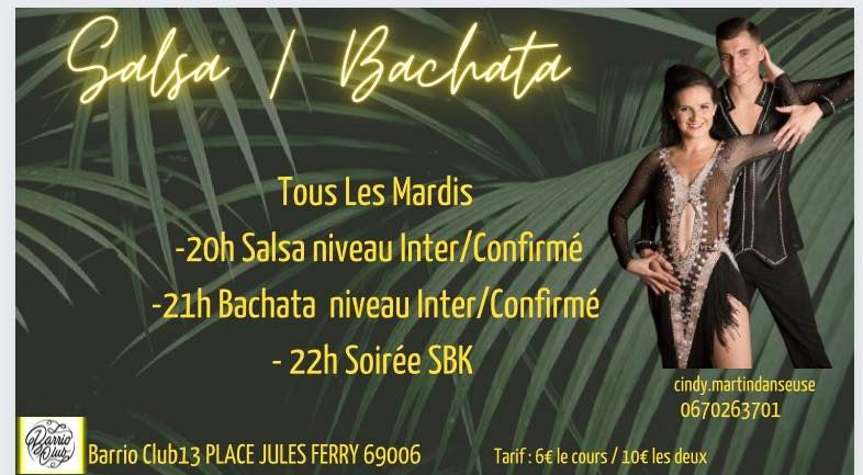 COURS DE DANSE 20 h à 22 h SALSA &BACHATA inter au BARRIO CLUB aux Brotteaux 69006 Lyon
