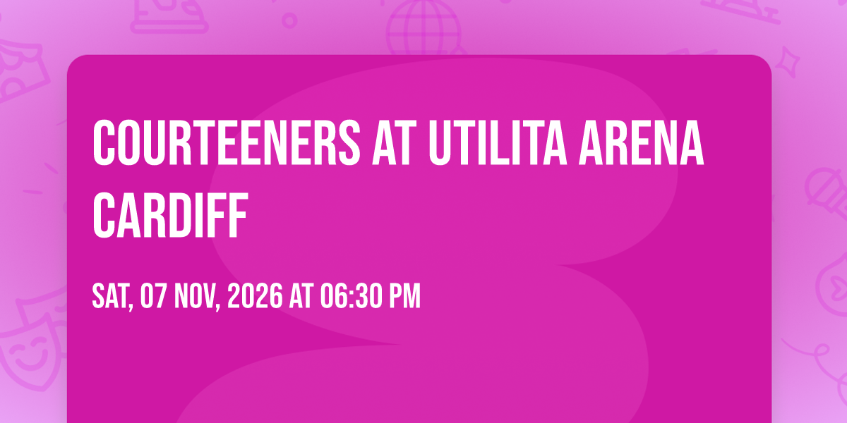 π Prepare to be amazed at Courteeners at Utilita Arena Cardiff, the most anticipated gathering of the season! π Set against the stunning backdrop of Utilita Arena Cardiff in vibrant Cardiff, WA, this event promises to redefine your expectations. π Mark your calendars for November 7th, 2026 at 06:30 PM and get ready to immerse yourself in an atmosphere of wonder and excitement. β¨ From the moment you arrive, you'll be transported into a world where memories are made and stories come alive. They have crafted an experience that perfectly harmonizes entertainment, innovation, and community spirit. π Join us as we create moments that will be discussed for years!