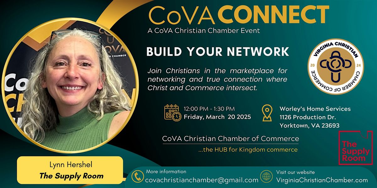 The CoVA Christian Chamber of Commerce brings Christian business owners together to connect, collaborate, and grow in the marketplace. This event is one of our regular networking gatherings for members, created to build real relationships and encourage faith-driven leadership in business. Non-members are welcome to attend one meeting for free to experience the Chamber community. Those who wish to continue can become members at virginiachristianchamber.com