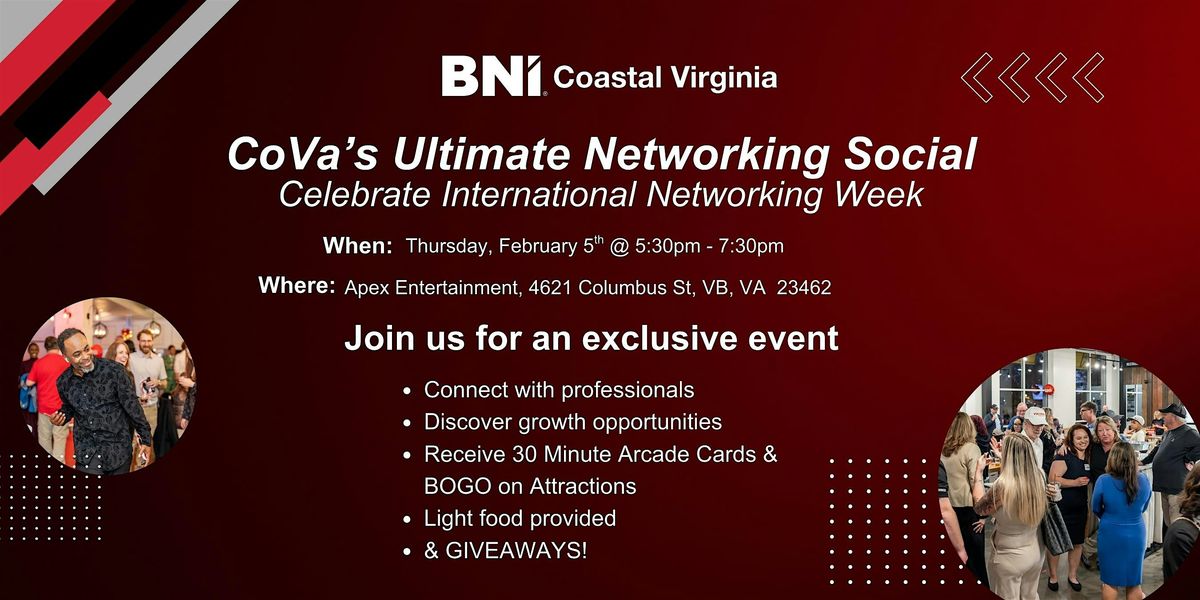 Get ready to mingle and connect face-to-face at the coolest in-person event around to celebrate International Networking Week. Whether you're looking to make new friends, swap ideas, or just have a great time, CoVa's Ultimate Networking Social is the place to be.