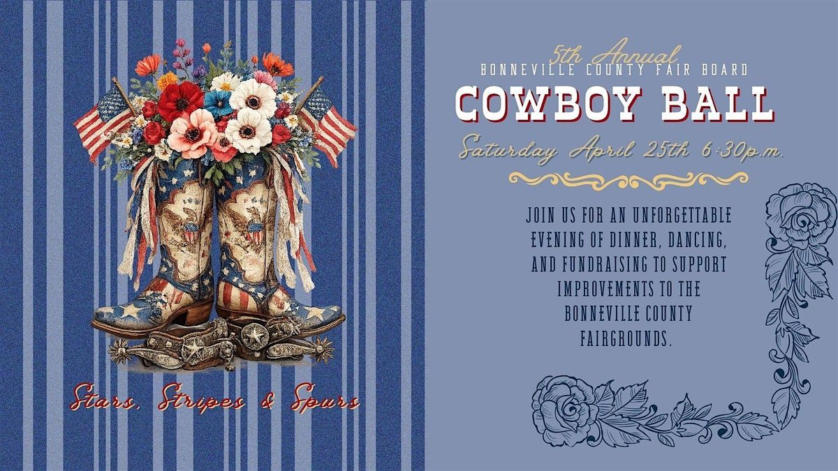 Stars, Stripes and Spurs! An evening of live music, cowboy poetry, dancing, a catered dinner, mocktails, raffle prizes, silent auction and live auction. Dress is casual but Cowboy hats and boots are encouraged! All proceeds will go to benefit improvements at the Bonneville County Fairgrounds.