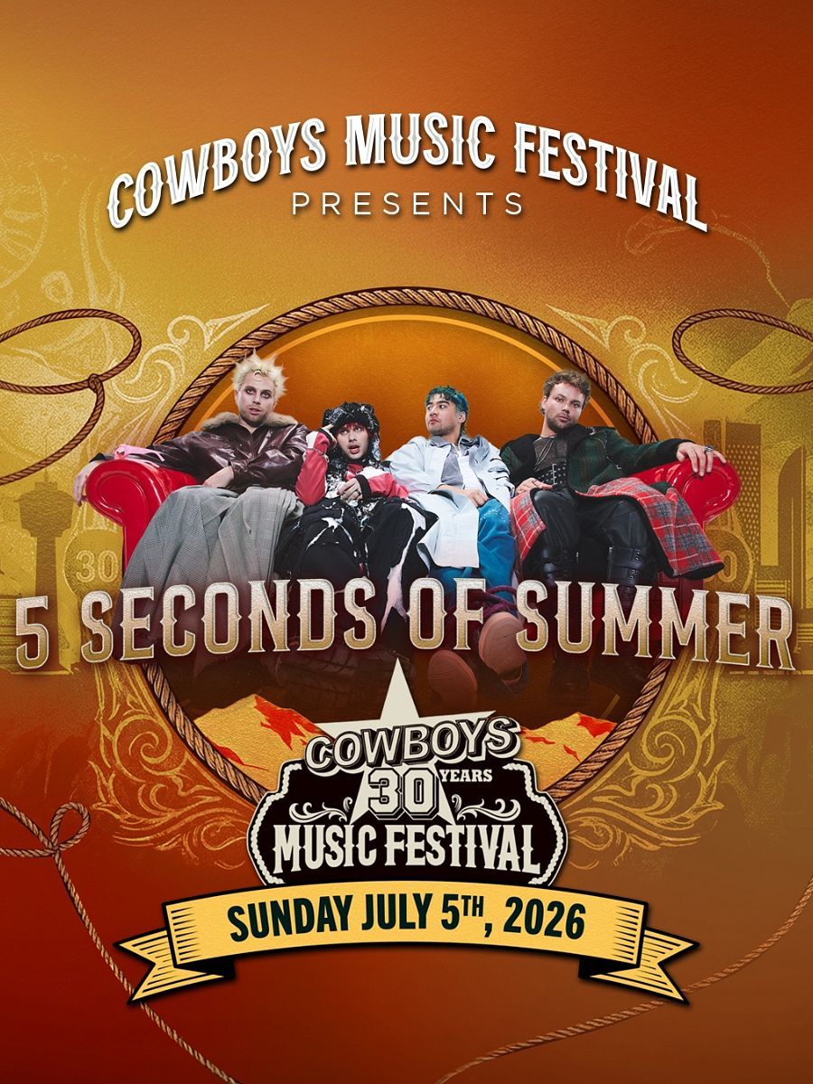 π Step into a world of wonder at Cowboys Music Festival: 5 Seconds Of Summer, where extraordinary moments await! ποΈ Located at Cowboys Park in dynamic Calgary, AB, this event will become the talk of the town. π