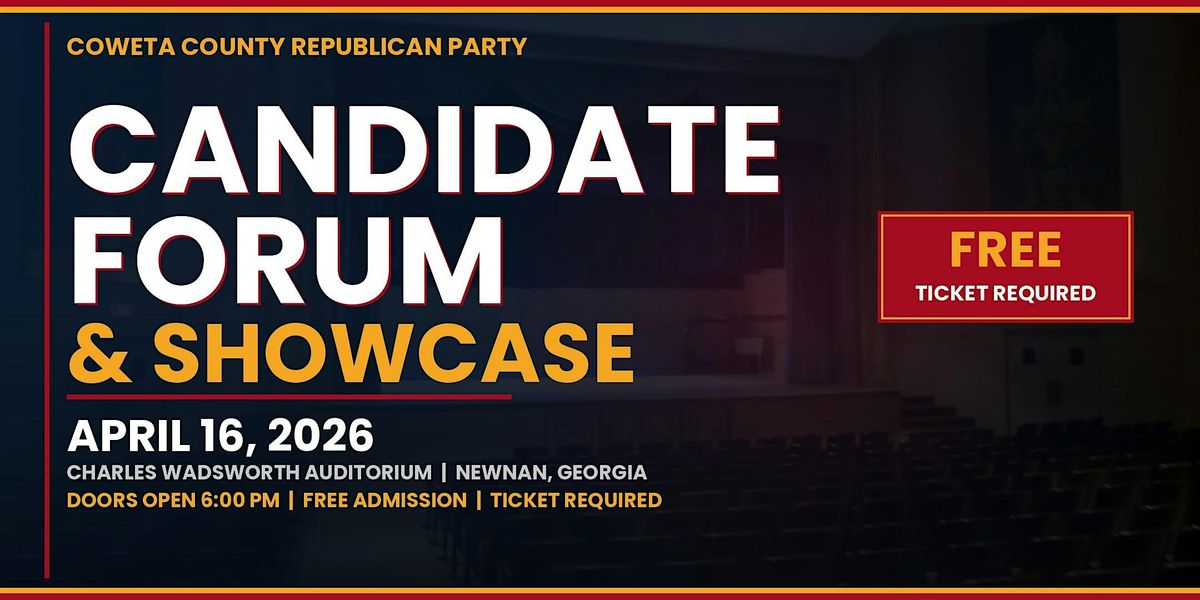 Info: Republican candidates for statewide office will introduce themselves to Coweta County voters, share their platform, and make their case before the May primary. Meet candidates you may not yet know and hear what they stand for.