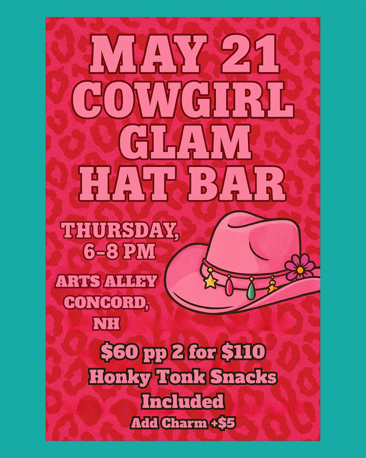#HolymolyCraftyCorner #ArtsAlley #CraftThursdays #CowgirlGlam #HatBurningWorkshop #WesternStyle #DiscoCowgirl #ConcordNHEvents