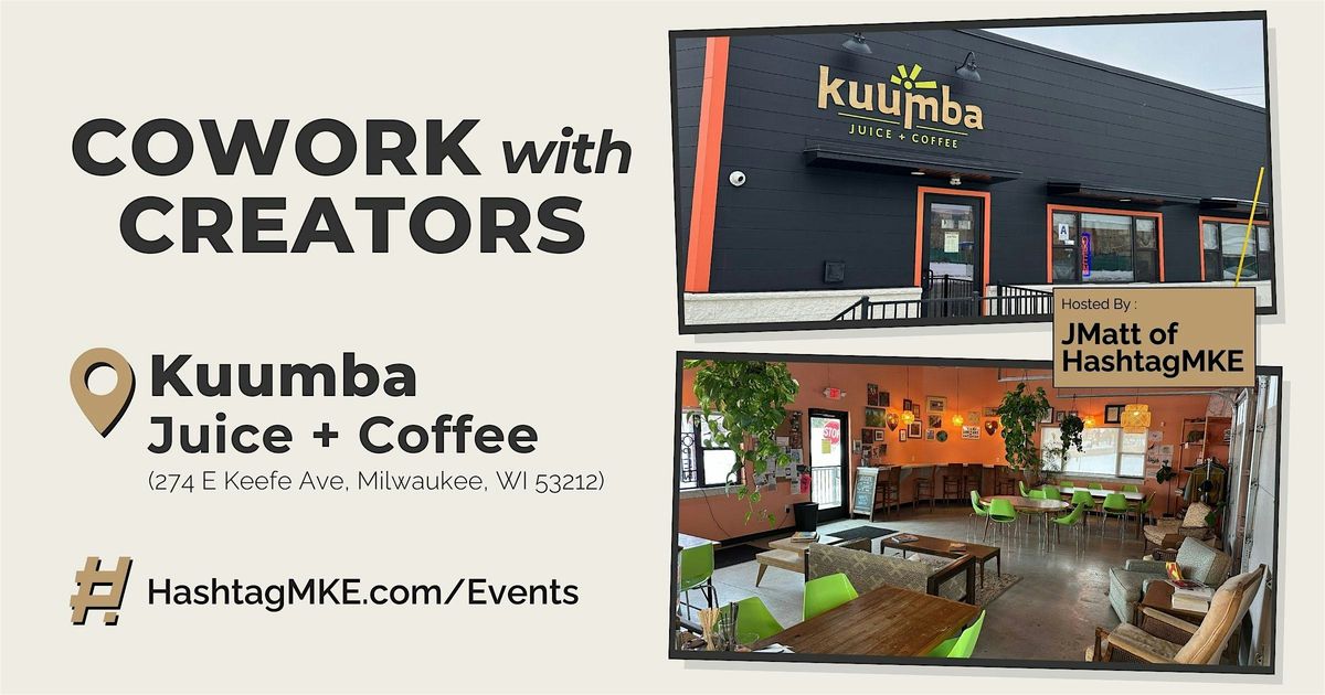 Cowork with Creators is a recurring series on the first Friday of each month, alternating between Kuumba Juice + Coffee and BizStarts Community Market.