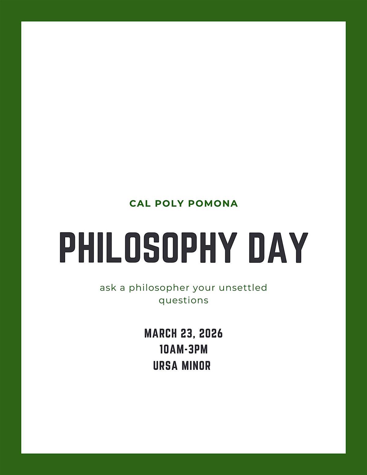 Come celebrate Philosophy Day with the CPP Philosophy Department!