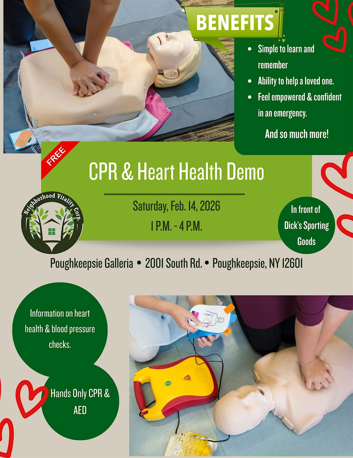 Join us in the conference room at the Poughkeepsie Galleria for a hands-on session all about CPR and keeping your heart healthy! Whether you're a pro or just curious, this demo is a chill way to learn lifesaving skills. Come out and grab some heat health freebies, ask questions, and practice those chest compressions. Your heart will thank you!