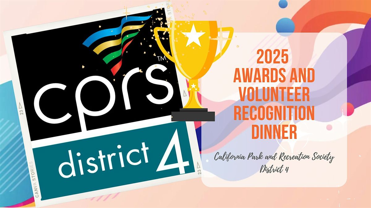 The California Park and Recreation Society (CPRS) District 4 Annual Awards and Volunteer Recognition Dinner will be held on Thursday, May 7, 2026, at the Mountain View Community Center. On this special evening, CPRS will honor outstanding individuals for their professional and volunteer contributions to the fields of parks, recreation and human services.