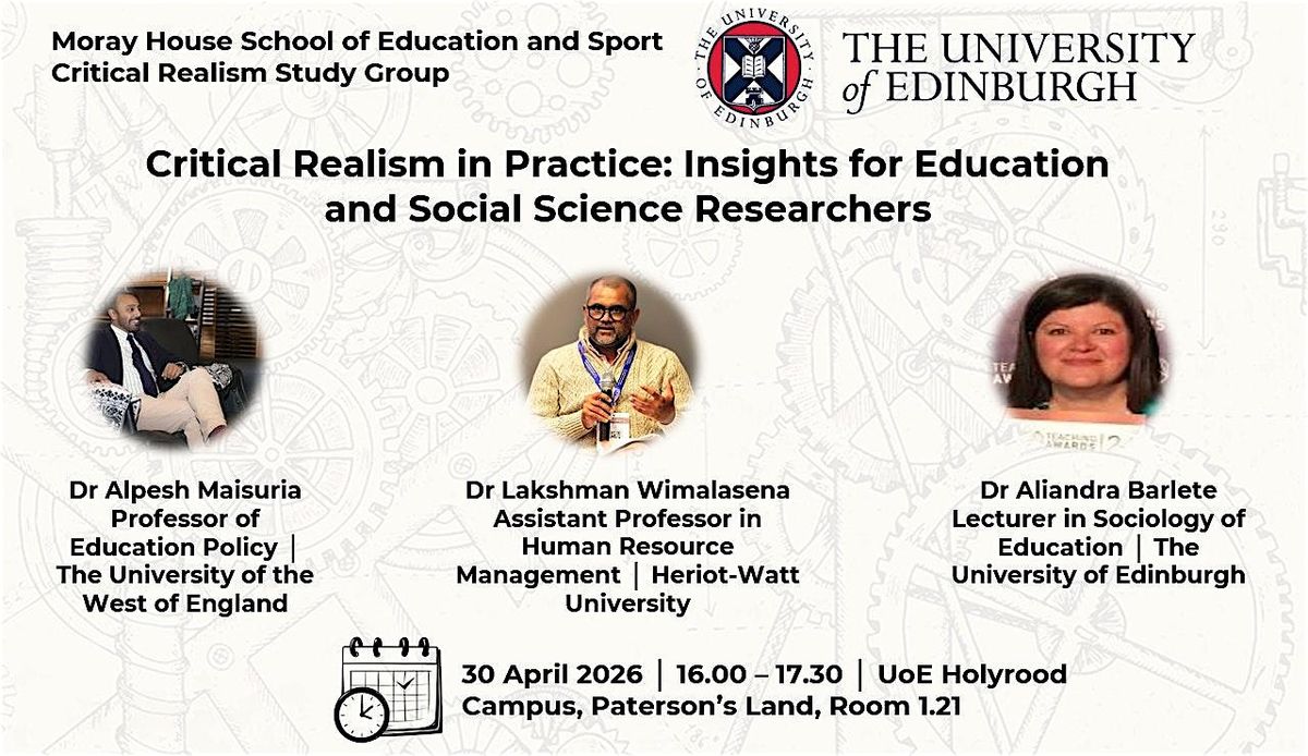 This hybrid event, “Critical Realism in Practice: Insights for Education and Social Science Researchers,” organised by the Critical Realism Study Group at Moray House School of Education and Sport, The University of Edinburgh, aims to address this need. It will provide students and colleagues with insights into the methodologies, conceptual frameworks, and practical considerations central to conducting critical realist research.