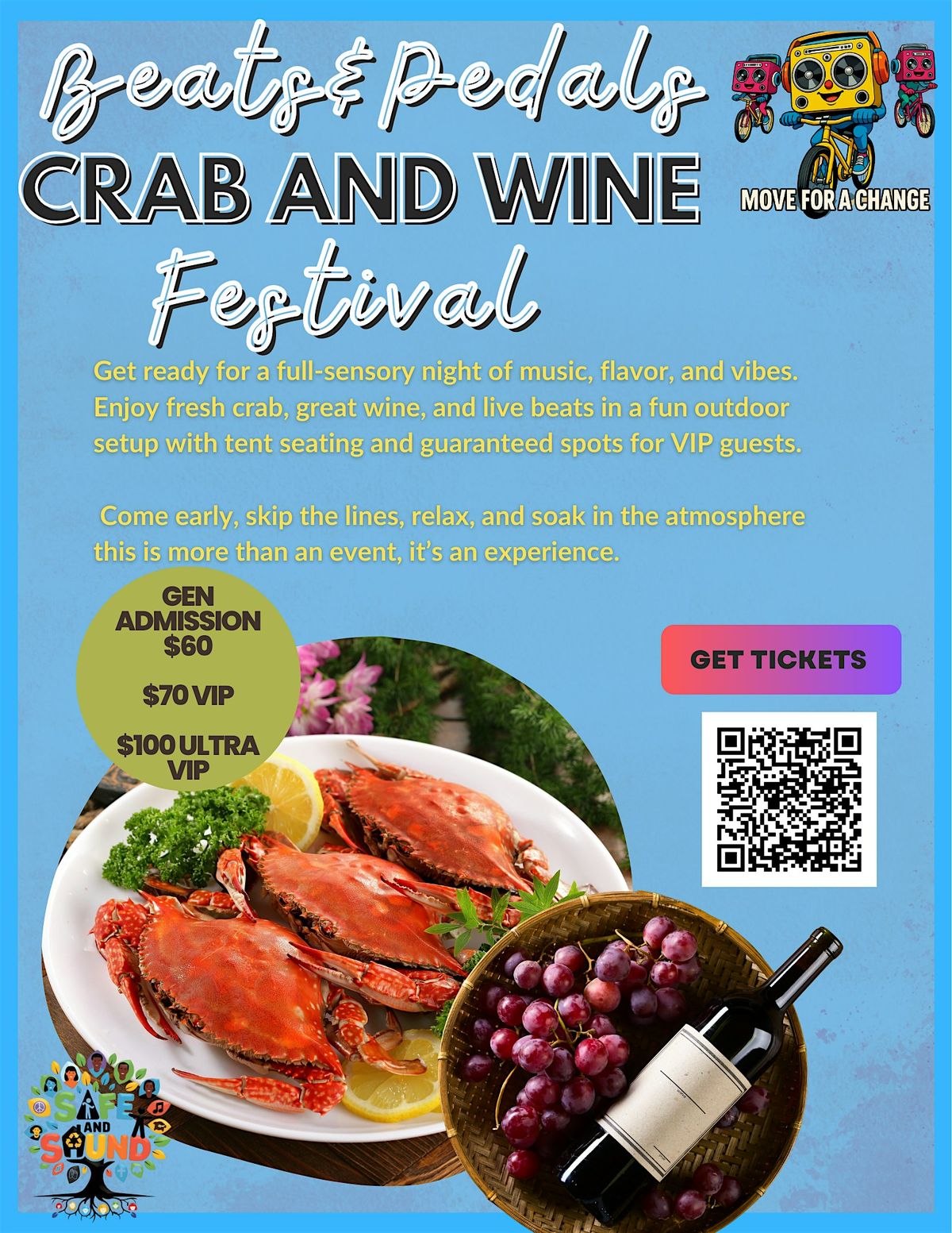Get ready for an epic day at the Crab & Wine and Music Festival! Dive into delicious crab dishes, sip on some smooth wine, and vibe out to live beats that’ll keep you moving. It’s all happening in person, so grab your friends and enjoy the perfect blend of flavors, tunes, and good times. Don’t miss out on this unique Beats & Pedals Festival experience, come for the food, stay for the music!