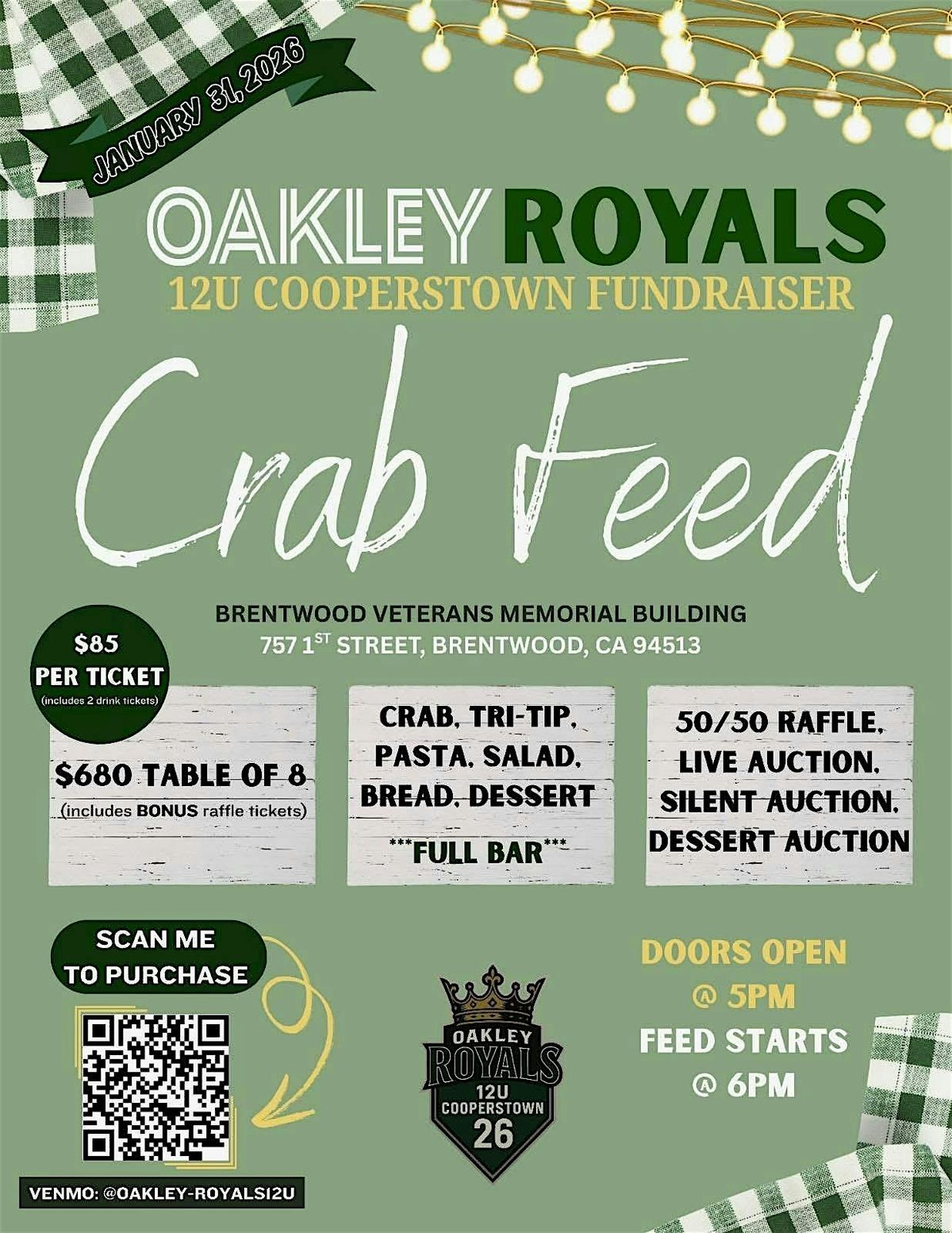Get ready for a fun-filled in-person evening packed with delicious crab and great company. Help support the Oakley Royals 12U Baseball team go to Cooperstown this summer! Whether you're a seafood lover or just looking for a good time, this event is the perfect way to enjoy fresh crab, meet friends, and make new memories. Don’t miss out on the chance to dive into a tasty feast and have a blast!