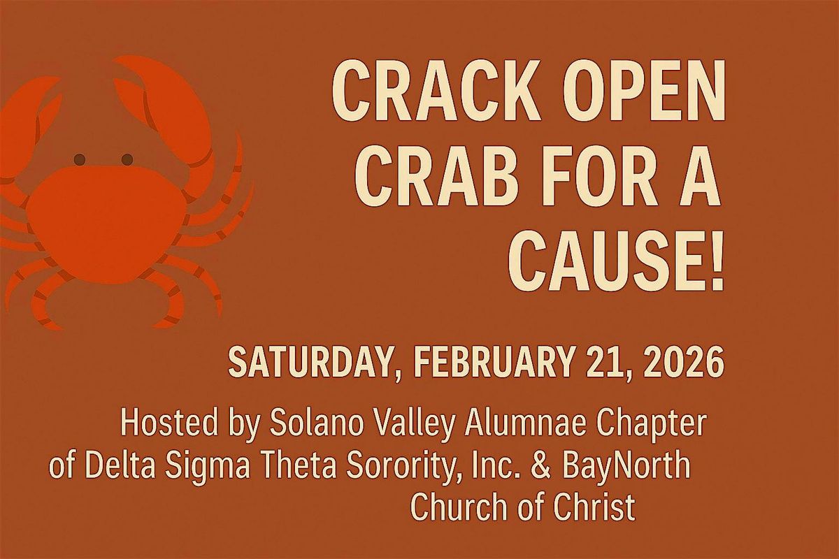 Join us for an unforgettable evening of great food and community impact! The Solano Valley Alumnae Chapter of Delta Sigma Theta Sorority, Inc. in collaboration with Bay North Church of Christ invites you to our Crab Feed Fundraiser on Saturday, February 21, 2026! It's going to be a fun night filled with hot tasty crabs, great company, music and lots of laughs. Don’t miss out on this chance to hang out, enjoy some delicious food, and connect with friends old and new. Come hungry, leave inspired! Together, we can make a difference.