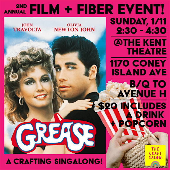 You're the one that I want! ------> to come to this annual event in Brooklyn! Bring your current craft project and sing along to Grease favorites. The house lights will remain on but you are encouraged to bring a craft light. Ticket includes popcorn and a drink. This event is open to adults and teens.
