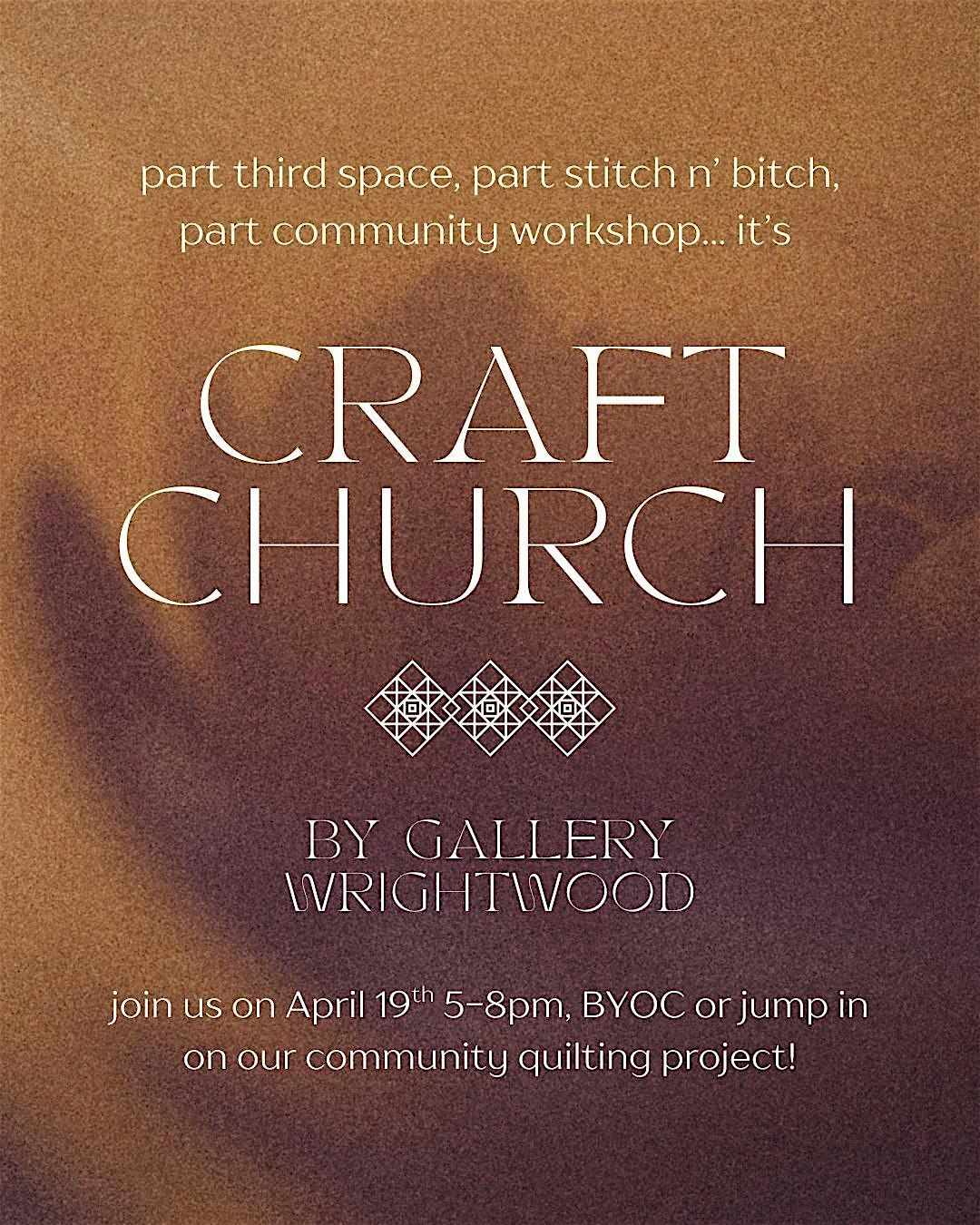 Have you ever seen those photos of European churches repurposed as community centers where a crowd of people gathered to craft in a huge, gorgeous cathedral space? That's the vision here.....Part third space, part stitch n’ bitch, part community workshop... it’s Craft Church!