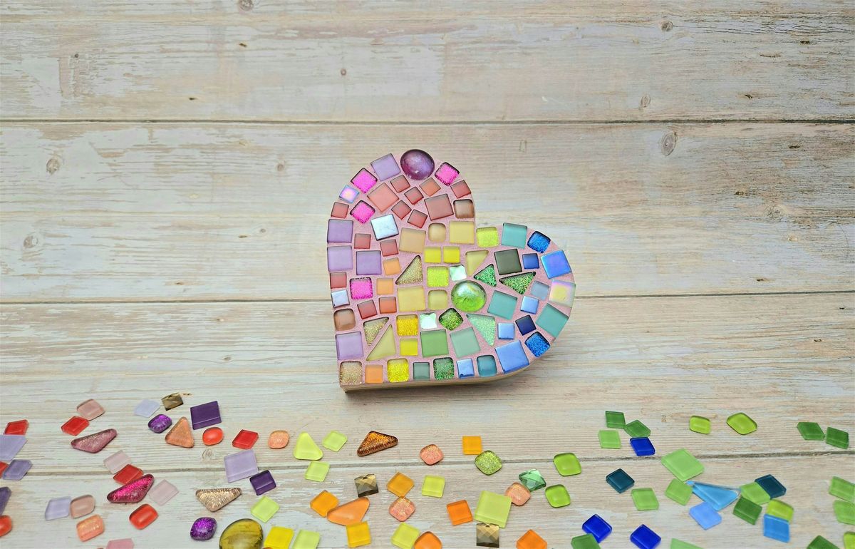 Get creative with us at Craft Class: Mosaic Hearts! This fun, in-person workshop lets you design your very own colorful mosaic heart. Whether you're a beginner or a craft pro, you'll love piecing together vibrant tiles and turning them into a beautiful piece of art. It's a perfect way to unwind, meet fellow craft lovers, and take home a unique creation. Bring your enthusiasm and let’s make some magic – no experience needed!