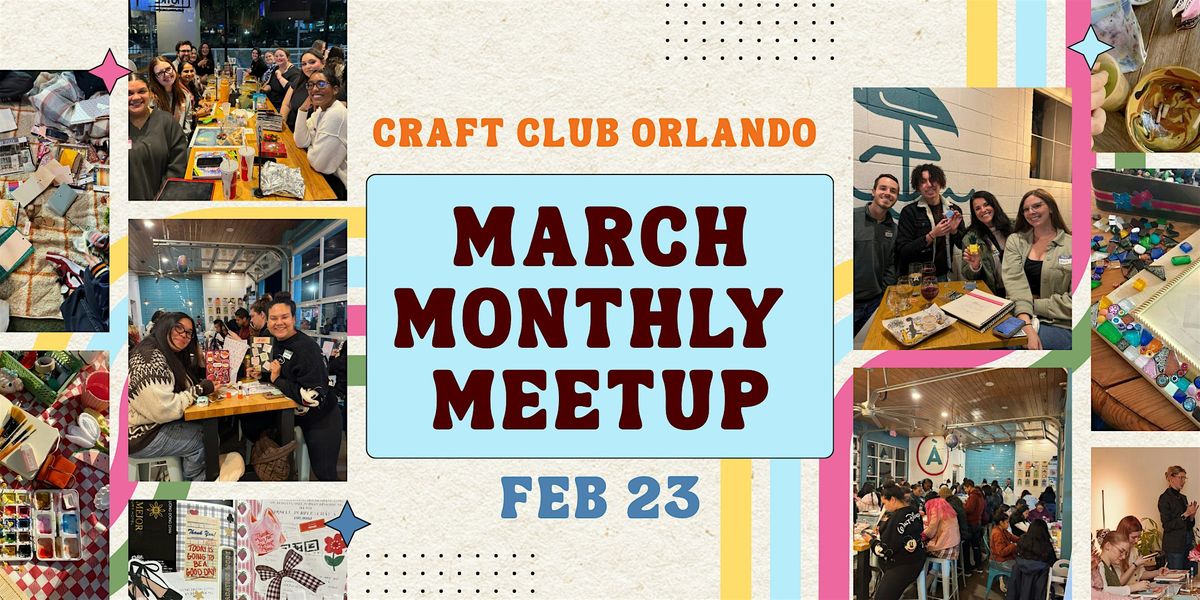 Hi Orlando Crafters! Join Craft Club Orlando for our free March Monthly Meetup. This is the perfect chance to hang out, share your latest projects, and get inspired by fellow craft enthusiasts.