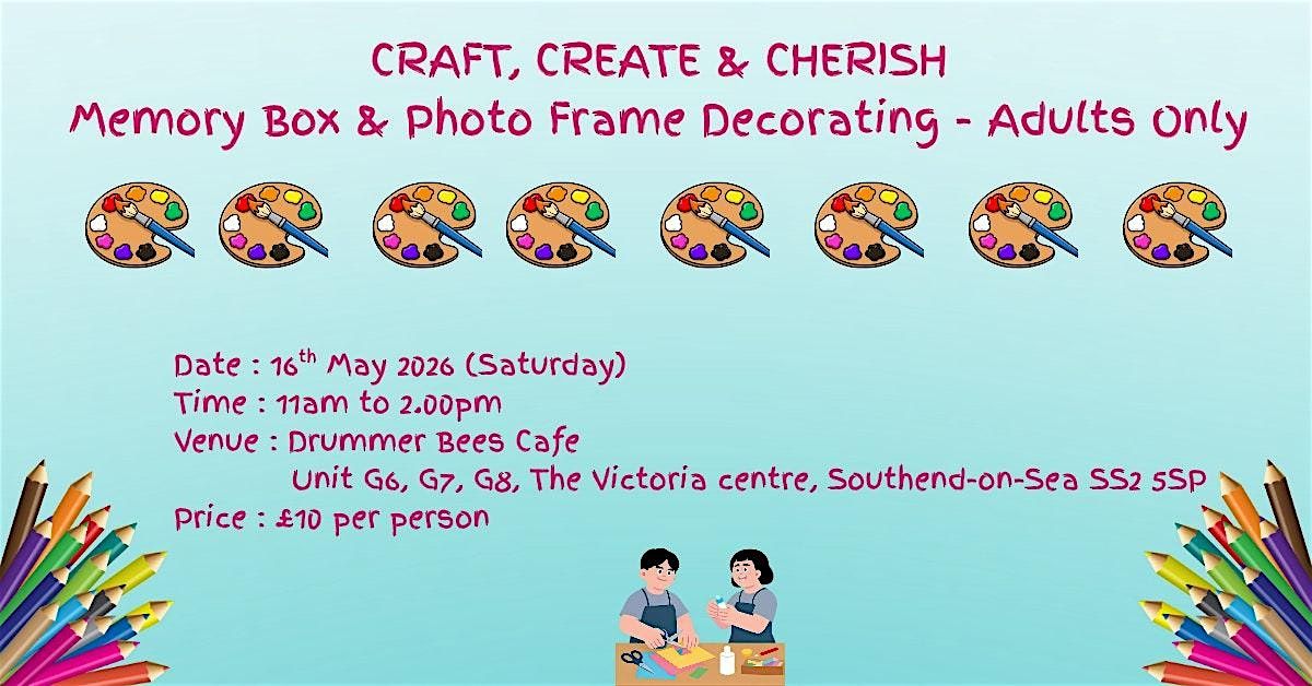 Join us for a hands-on Memory Box & Photo Frame Decorating Workshop designed just for adults who wants to unwind, get creative , and take home something meaningful. You'll have access to all materials, guidance and warm welcoming space to craft to something special.