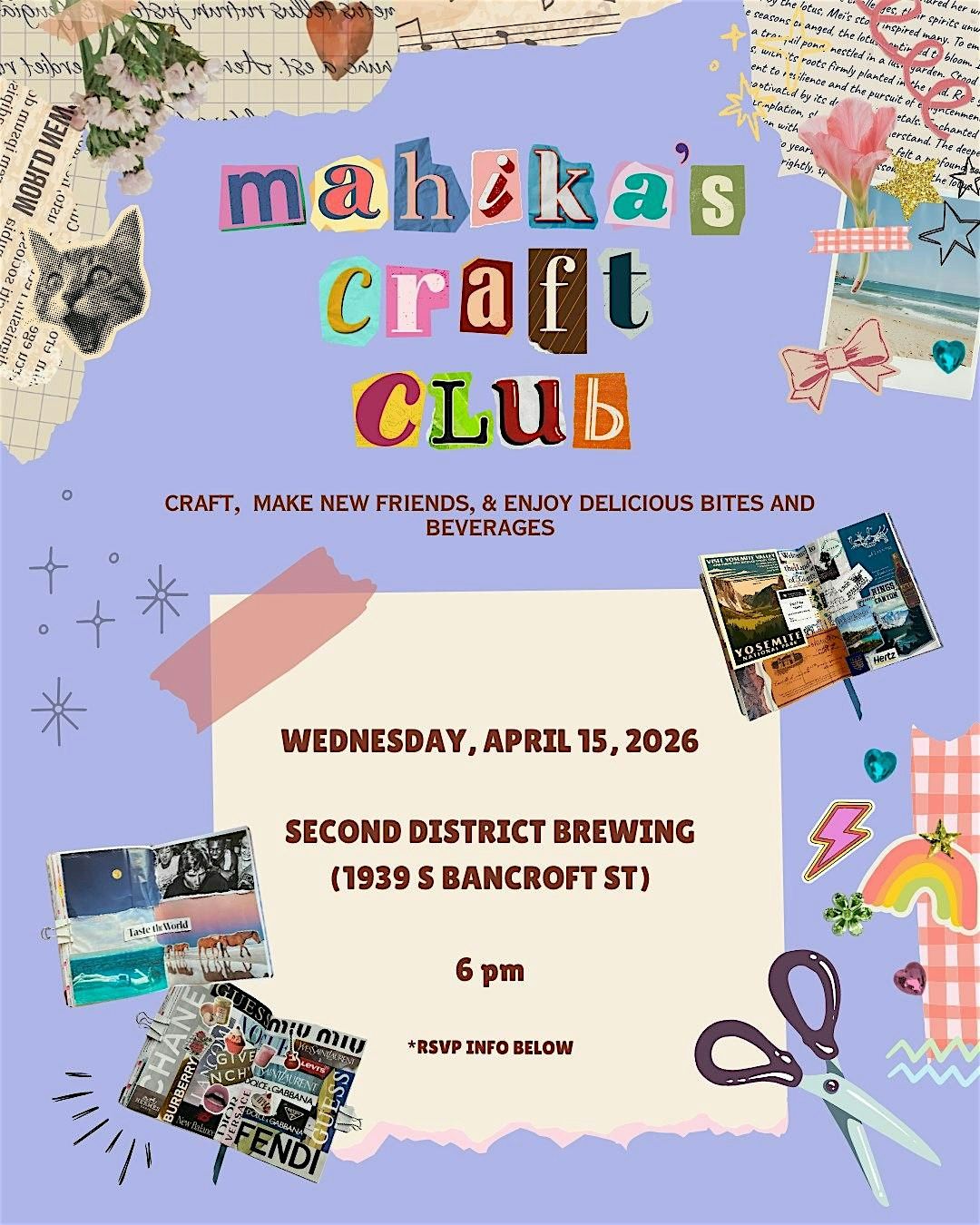 Let's get together to craft, make new friends, and enjoy delicious bites and beverages from Second District Brewing.