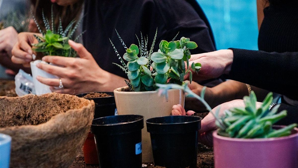 You’ll be gently guided by Malaika through a succulent potting experience, where you’ll design your own arrangement using a curated selection of plants, stones, and decorative elements.