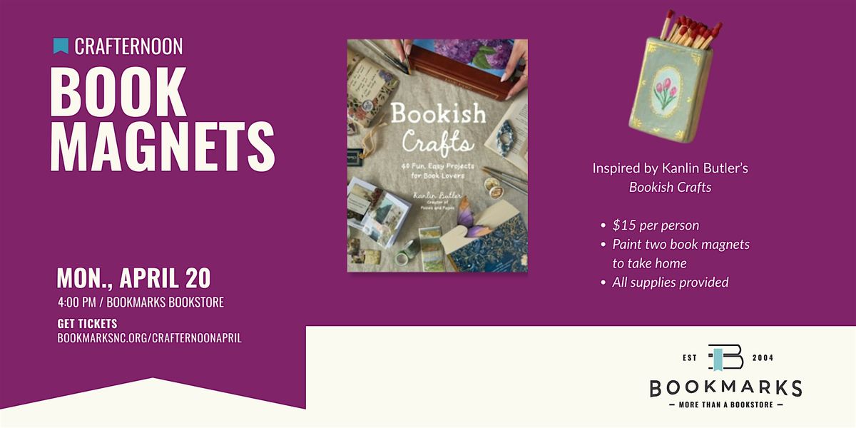 Join us at the Bookmarks bookstore for a crafty afternoon! We'll be making miniature book magnets, perfect for holding matches or for using as refrigerator decoration.