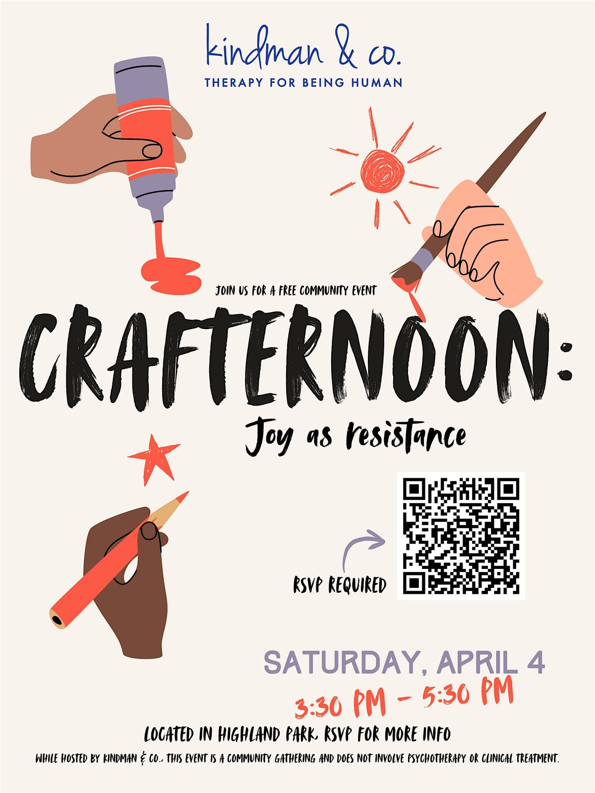 While hosted by Kindman & Co., this event is a community gathering and does not involve psychotherapy or clinical treatment.
