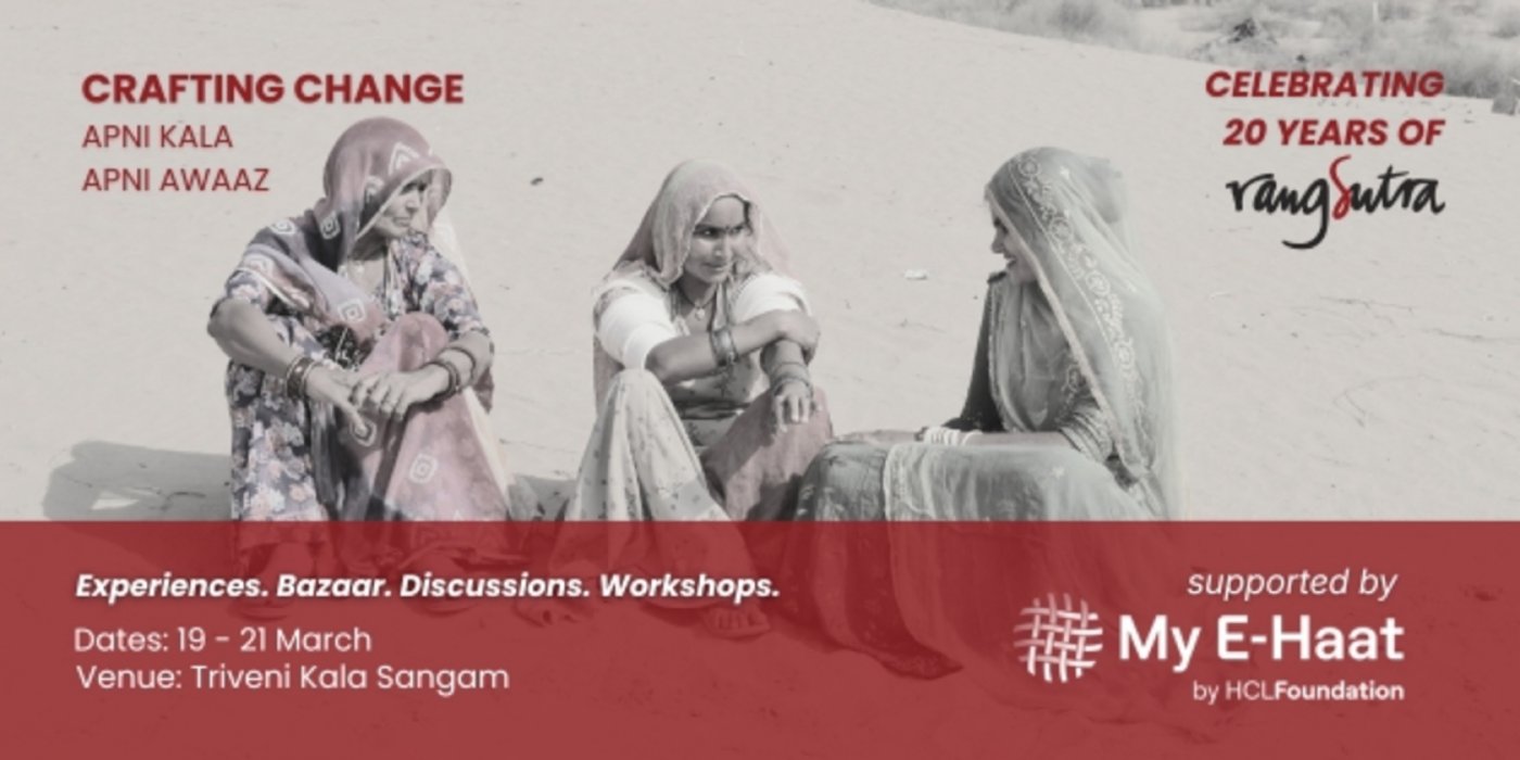 ‘Crafting Change – Apni Kala Apni Awaz, celebrating 20 years of Rangsutra’, supported by the HCL Foundation, to be held at Triveni Kala Sangam, New Delhi. Is envisioned as a multi-format, multi-stakeholder platform that brings together artisans, craft organisations, designers, buyers, policymakers, consumers and institutions working in the livelihoods and craft ecosystem. The event goes beyond celebrating Rangsutra’s work, and instead opens up wider conversations on the future of craft in India, its scale, sustainability and global relevance.