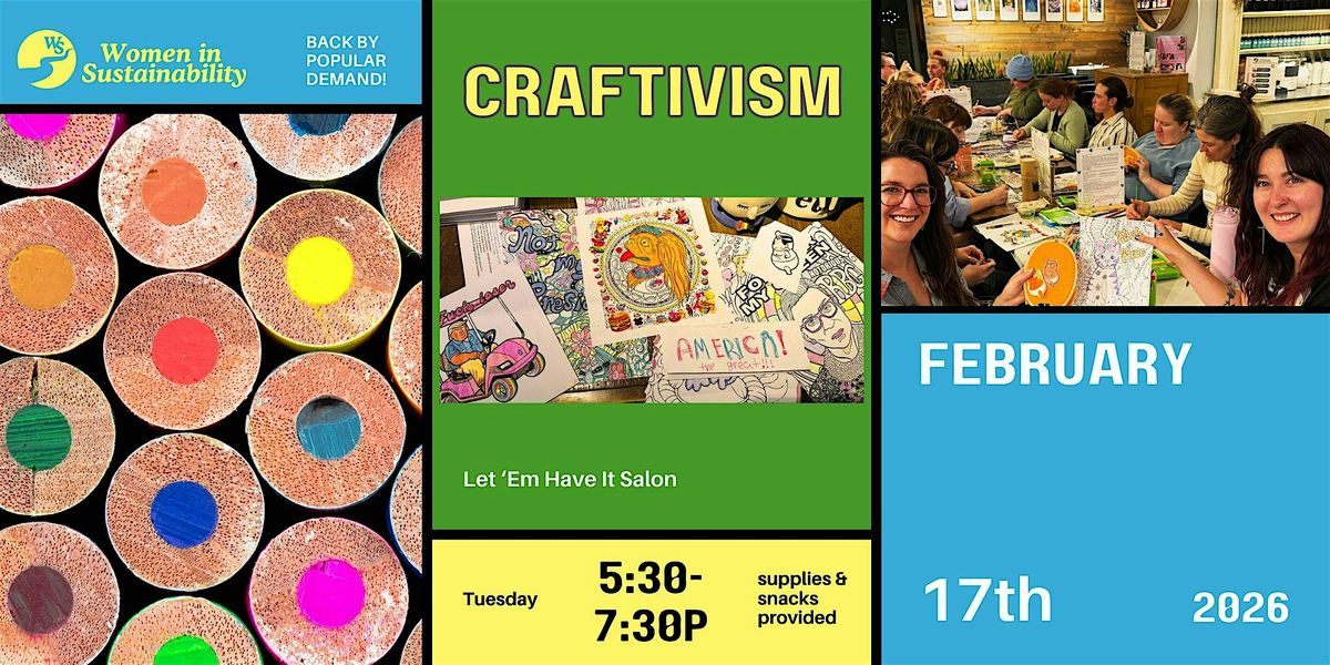 Join Women in Sustainability + Let Em Have It Salon for another night of Craftivism—the joyful, slightly unhinged intersection of crafting + activism + community therapy.