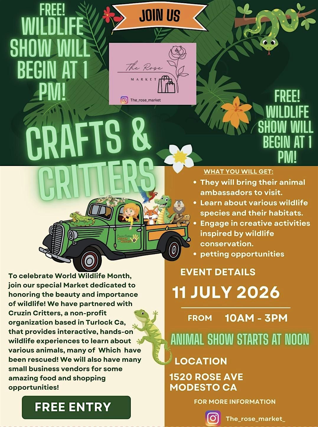 Join our craft fair with 60+ vendors! Special guest Cruzin Critters brings wild live animals for a FREE show at 1PM—fun for all ages!