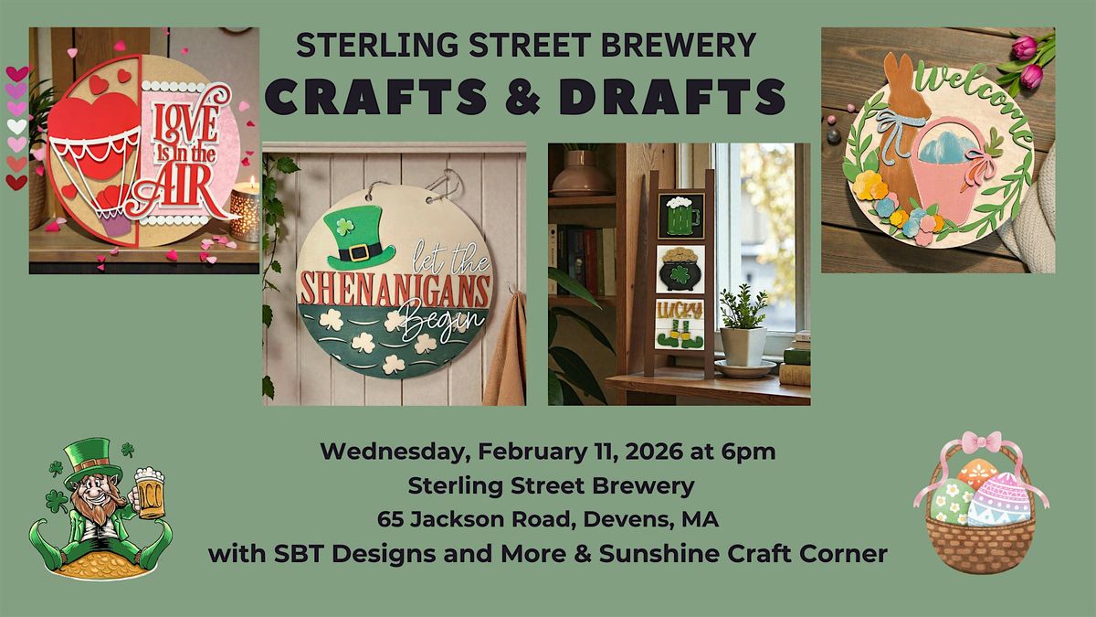 Welcome to Crafts & Drafts! Join us at Sterling Street Brewery, 65 Jackson Rd on February 11, 2026 at 6:00 PM (Eastern Time) for a fun evening of crafting and enjoying some cold brews. Whether you're a seasoned crafter or just looking to try something new, this event is perfect for everyone. Get ready to unleash your creativity while sipping on your favorite drinks. 4 Projects to choose from starting at $35 to $40. Don't miss out on this exciting opportunity to mingle with fellow craft enthusiasts and have a blast. Mark your calendars and we'll see you there! Registration required by 2/8 since all projects are cut to order. Call 978-204-3430 with any questions.
