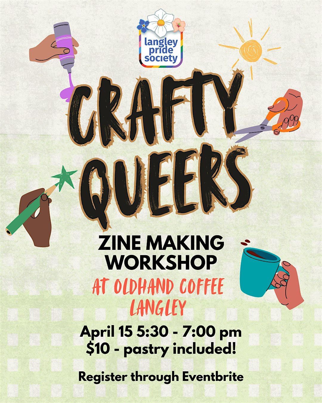 Pump up your creativity, my crafty, coffee-loving queers! Join us on April 15 at Oldhand Coffee (Langley) for a zine-making workshop!