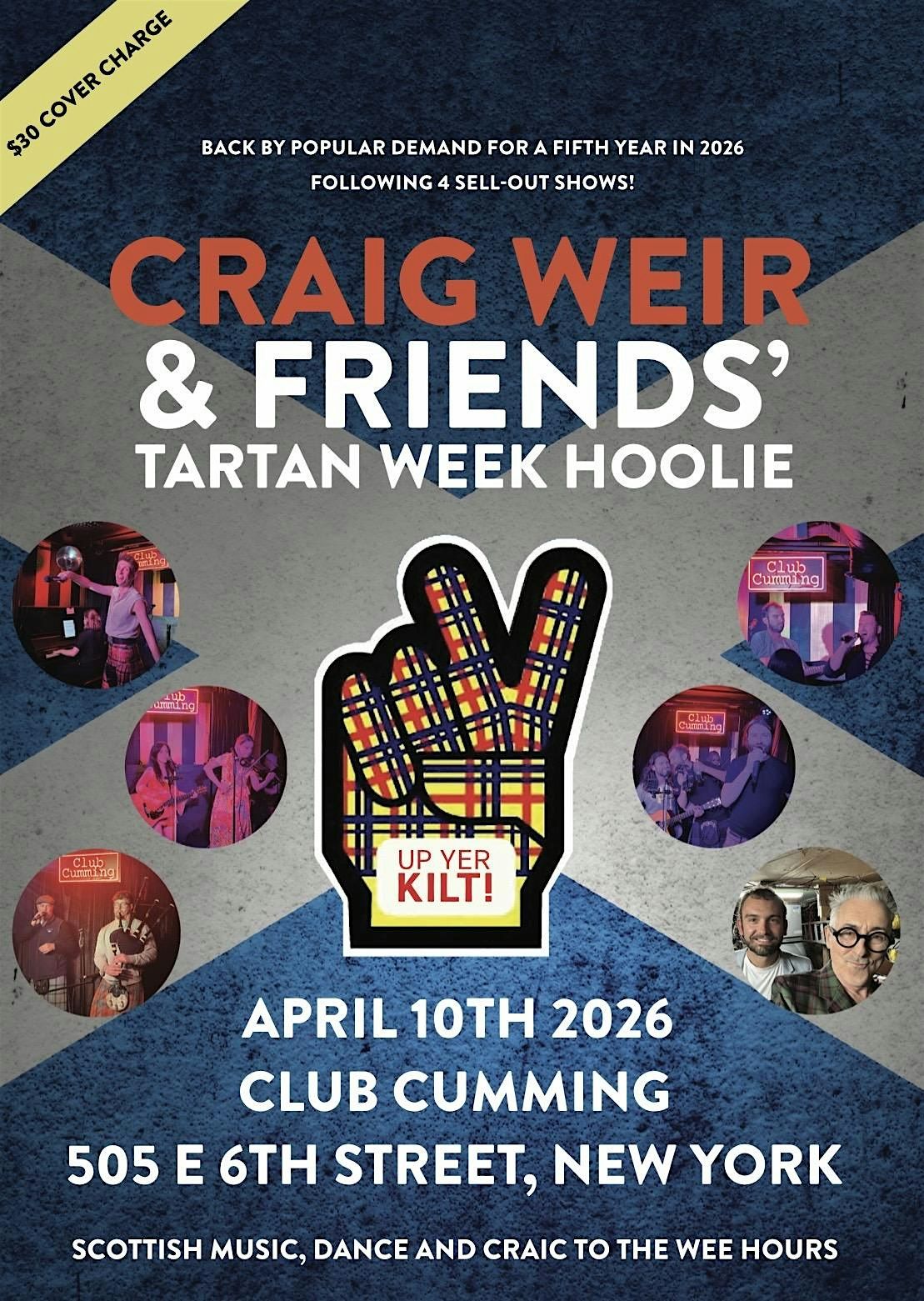 Returning for a fifth year, Craig Weir & Friends’ Tartan Week Hoolie will once again come alive at Alan Cumming’s (last year’s Grand Marshal) Club Cumming.